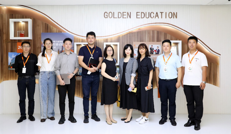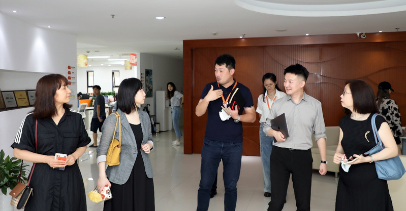 在王贤瀚副总裁的引导下,我校团队首先参观了位于高顿教育总部的直播录播教室、课程研究院、教学服务部门、数字化平台展示区、党建宣传园地等区域,并在过程中就现代教育教学管理模式、新型数字教育平台建设、教学功能区域形态布局等问题进行了现场交流。