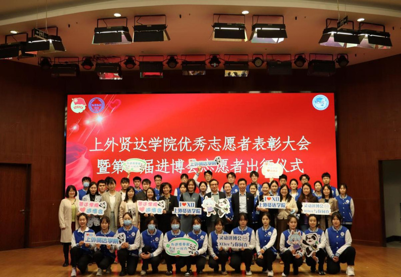 10月20日下午,“学习二十大、永远跟党走、奋进新征程”——上外贤达学院优秀志愿者表彰大会暨第五届进博会志愿者出征仪式于崇明校区语信楼报告厅顺利召开。党委副书记王科、学生管理服务中心主任陈应、校党委组织部部长陈琅玛、学工处副处长付志俊出席会议,各学院党总支书记、副书记、团委书记及三十余名贤达“小叶子”代表参加会议。会议由校团委干事李滩主持。