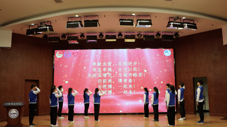 艺术与传媒学院“小叶子”蔡梦婷同学带领志愿者代表上台宣誓,共同许下“以青春相约进博、以拼搏助力进博”的庄严承诺!