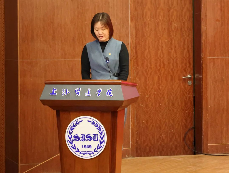 商学院“小叶子”罗莉代表志愿者发言。她表示,在此次进博会志愿服务中,将会发挥经验所长,带动贤达“小叶子”们履行志愿者职责、践行志愿服务理念、传播贤达志愿精神!