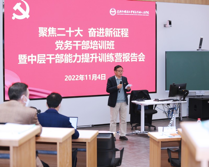 11月4日上午,学校在崇明校区国交楼312大师讲堂举办学习贯彻党的二十大精神专题报告会。报告会邀请上海市民办教育协会会长、原上海市教卫党委副书记、市教委副主任高德毅教授作“民办教育高质量发展——新时代民办教育发展机遇与挑战”主题报告。执行董事长李进、校长郑方贤、监事长陆朴鸣,副校长徐征、马艳红、罗玲芳等校领导以及全体中层干部、党务干部、党员培训班成员及相关部处负责人参加。报告会由党委副书记王科主持。