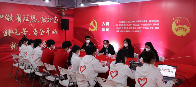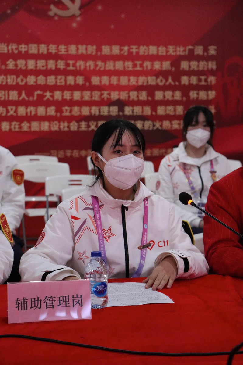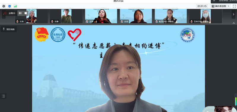 慰问结束后,王科副书记在国家会展中心志愿者之家“信仰大厅”参加了我校“传递志愿薪火 青春相遇进博”主题团日活动,学生管理服务中心主任陈应、学生工作部部长张园园,各学院党总支书记、副书记、分团委书记线上参与,第五届进博会带队教师朱缨主持活动。陈应主任在会上致辞,她寄语贤达“小叶子”要用实际行动践行校训精神和志愿服务精神,真正以优质的服务展现了贤达学子青春风貌,展现了贤达学院的内涵底蕴!第五届进博会储备志愿者(辅助管理岗)第三临时团支部书记罗莉,会期志愿者汤芮、“小叶子”体验官刘雨潇分别从闭环管理、岗前实训和上岗期间等方面进行了实践分享。各学院党总支书记纷纷点赞并对“小叶子”们提出期许,鼓励同学们将个人小我融入祖国大我,在志愿服务活动中续写青春华章。