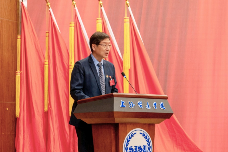 11月18日,上海外国语大学贤达经济人文学院第九次学生代表大会于崇明校区语言信息楼报告厅隆重召开。校长、党委副书记郑方贤出席大会开幕式并讲话。校长办公室主任陈伟、党委办公室主任张莉、党委组织部部长陈琅玛、校团委书记黄爽以及各学院党总支书记、副书记、团委书记出席会议,95名学生代表共同参会。