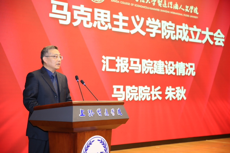11月26日,上外贤达学院马克思主义学院成立大会在学校崇明校区语信楼报告厅举行。