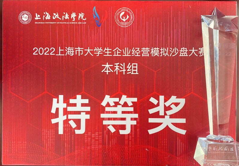 本次大赛由上海市教委主办,上海政法学院承办,新道科技股份有限公司协办的2022年上海市大学生企业经营模拟沙盘大赛在上海政法学院中国-上海合作组织国际司法交流合作培训基地顺利举行。我校商学院教师易莉华、赵熙、林倩带领商学院、国交学院工商管理系的两支学生代表队,分别获得上海市大学生企业经营模拟沙盘大赛特等奖(上海市第1名)和一等奖的好成绩。