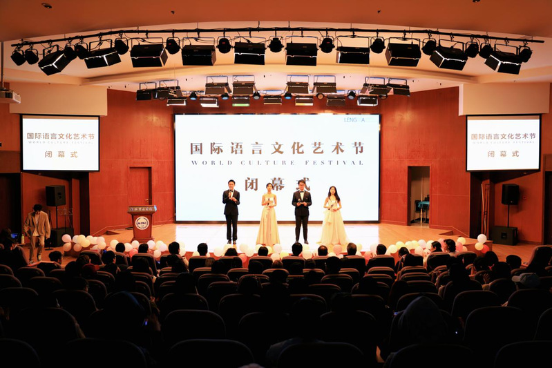 本次国际文化艺术节闭幕式既是一场展示我校师生风貌的汇报演出,也是本次艺术节的优秀作评展演。配音、歌唱、舞台剧、短视频制作以及乐器演奏等风格各异、生动有趣的表演在舞台上悉数呈现。每一个节目都在这个舞台上凭借多元的语言文化特色与艺术元素在观众面前大放异彩,书留翰墨,曲落潮声。伴随着小号的旋律和闪光灯的挥动,国际语言文化艺术节圆满落幕。