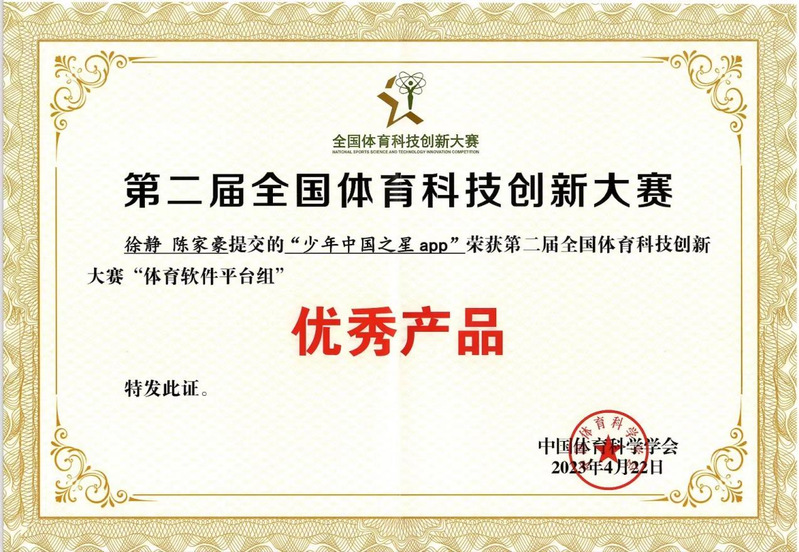 4月21-23日,由中国体育科学学会主办,山东体育学院、山东体育科学学会承办的第二届全国体育科技创新大赛圆满落幕。我校体育教研室教师徐静提交的作品“少年中国之星app”荣获“体育软件平台组”优秀产品奖。