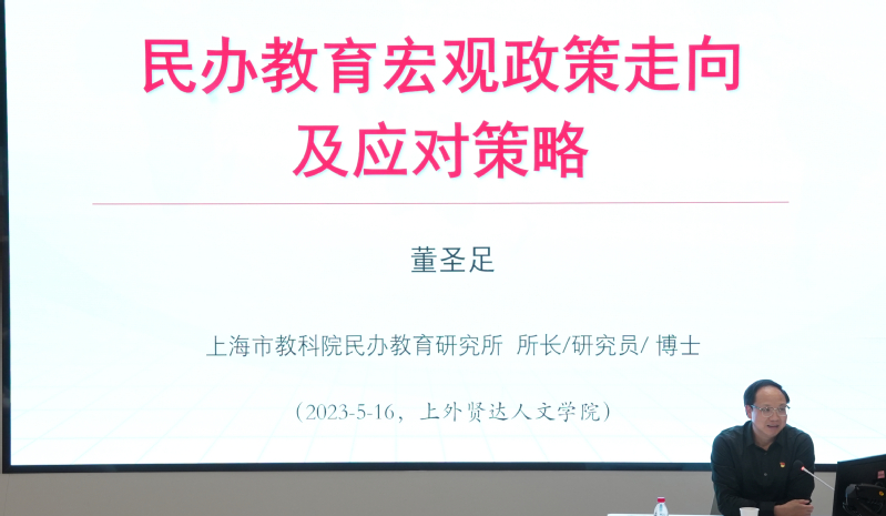 为进一步贯彻党的二十大精神,推进主题教育走深走实,2023年5月16日,上外贤达学院特邀上海市教育科学研究院民办教育(终身教育)研究所所长、中国民办教育协会常务理事兼学术委员董圣足研究员作《民办教育宏观政策走向及应对策略》主题报告。会议由党委副书记王科主持、党委班子成员、中层干部及党务干部参加了报告会。