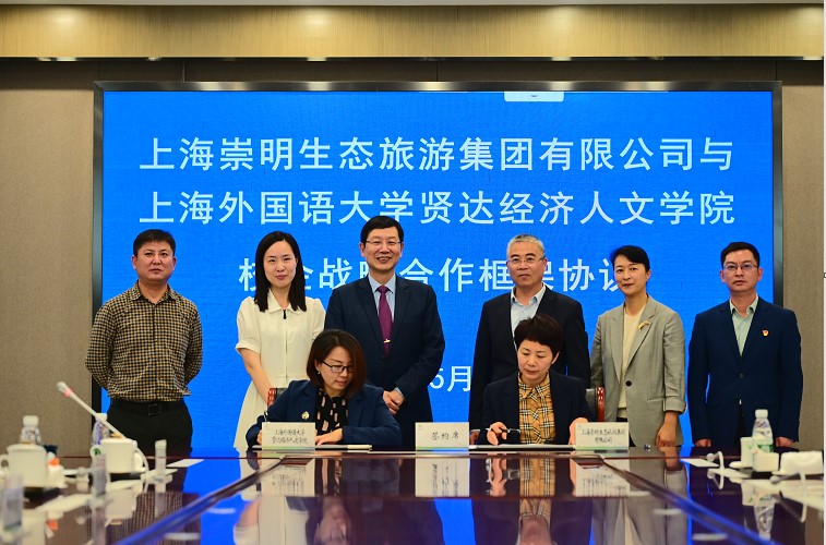 2023年5月19日上午,上外贤达商学院与崇明生态旅游集团校企战略合作签约仪式于瀛东度假村举行。上外贤达学院校长、党委副书记郑方贤,商学院副院长余婕,商学院酒店系系主任刘灵傲,商学院酒店学科带头人孙玉琴,崇明生态旅游集团党委书记、董事长陆立新,生态旅游集团党委委员、副总经理樊秀丽及相关人员出席了本次签约仪式。