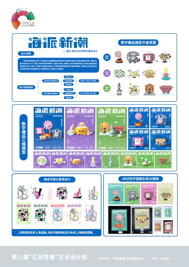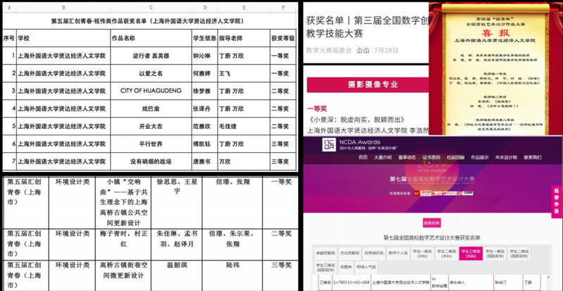 在2023第八届“汇创青春”——上海大学生文化创意作品展示比赛中,共产出学生作品近200件,选送50余件作品,目前已公布的赛道里共获得16个奖项;在第二届中国品牌设计大赛中,投稿200余件,斩获65个奖项,其中全国奖项20个;在第七届米兰设计周高校设计展,非命题赛道共投稿约100件,上海赛区共有25件作品获奖,并进入国赛评选,期待他们国赛的好成绩!