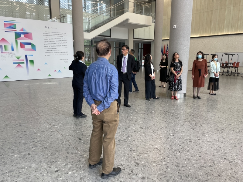 我校陆朴鸣监事长、马艳红副校长等一行陪同美国伊利诺伊大学来访贵宾参观了我校崇明校区,包括国交学院大楼、综合楼精英校友墙、智慧教学中心、图文信息中心等。王年华先生对我校的硬件设施、软件配套、信息化程度、国际化氛围表示高度的赞叹。