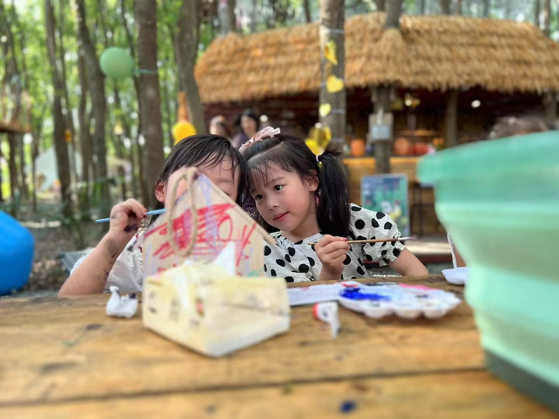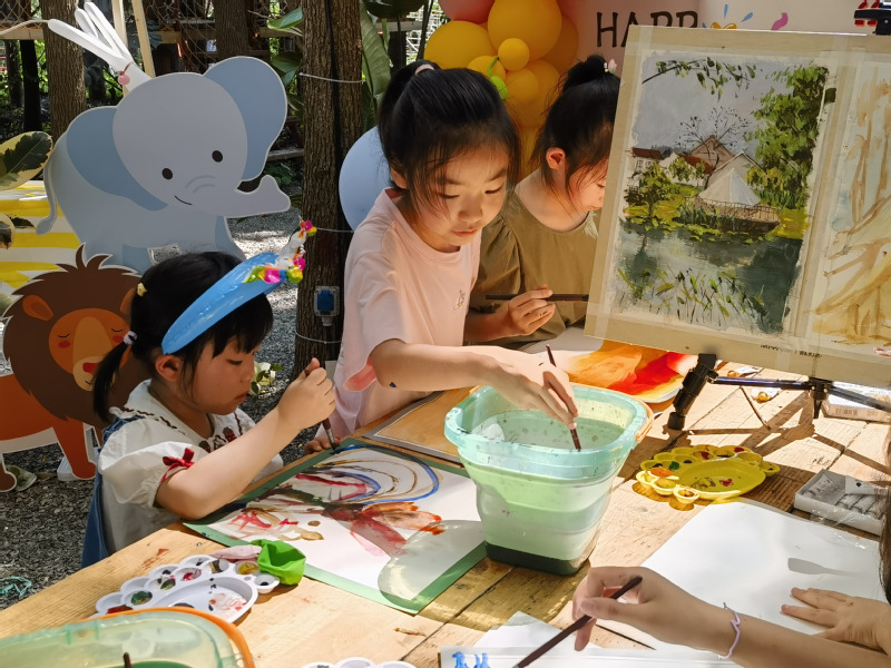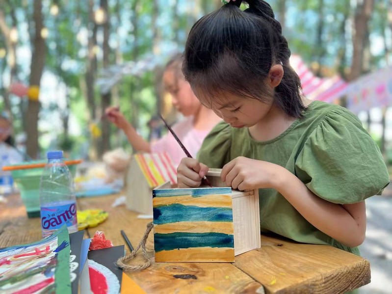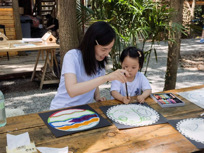 此次活动主要分为:“小丑先生”游戏互动、“树屋工坊”水粉绘画、“精灵之友”标本制作、“魔法鸟屋”鸟屋制作四个环节。“小丑先生”带领小朋友、大朋友们一起玩套圈圈、拔河、猜字谜等游戏。让原本不熟悉或不认识的大家,很快都融入到一起,欢乐起来。“树屋工坊”——孩子们通过彩笔和画纸,发挥自己的想象力,绘出心中的精灵部落,与家长或其他小伙伴一起合作完成,增强彼此团队合作意识。“魔法鸟屋”——在专业绘画老师的指导下,孩子们绘制自己心目中的小鸟屋。邀请森林小鸟来安家,培养孩子们更好地爱护自然的观念。“精灵之友”——孩子们跟随专业生物老师,一起寻找和发现蝴蝶的踪迹,了解它们的生活习性和生态环境,解锁生物奇观奥秘。