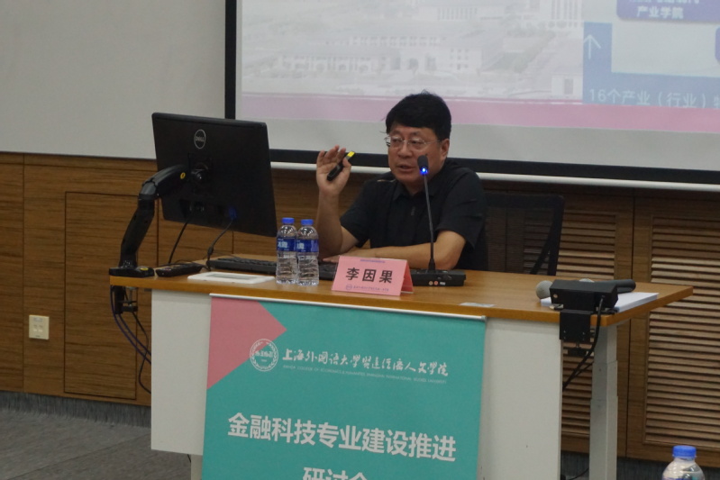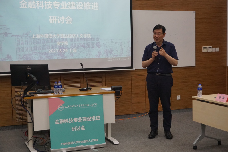 2023年8月29日,上外贤达商学院成功召开“金融科技专业建设推进研讨会”。我校校长郑方贤、江苏师范大学科文学院经济学院李因果院长、上海师范大学商业数据系朱敏主任、上海八客信息科技有限公司董事长李红波先生、北京知链科技有限公司解决方案总监周博先生、交大高金金融研究院金融科技研究中心原执行主任姜振兴教授及商学院主要领导和专业带头人、骨干教师出席本次研讨会。会议由商学院副院长季萍主持。