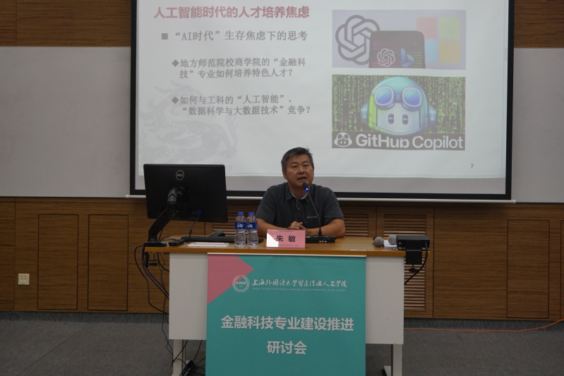 上海师范大学商业数据系主任朱敏教授以“科技赋能下的金融变革与高校金融科技人才培养思索”为主题,对金融类人才的数据科学能力要求进行了梳理和阐述,对人工智能时代的人才培养思路进行了介绍和展望,为我校金融专业的培养定位和培养特色提供了宝贵经验和建议。
