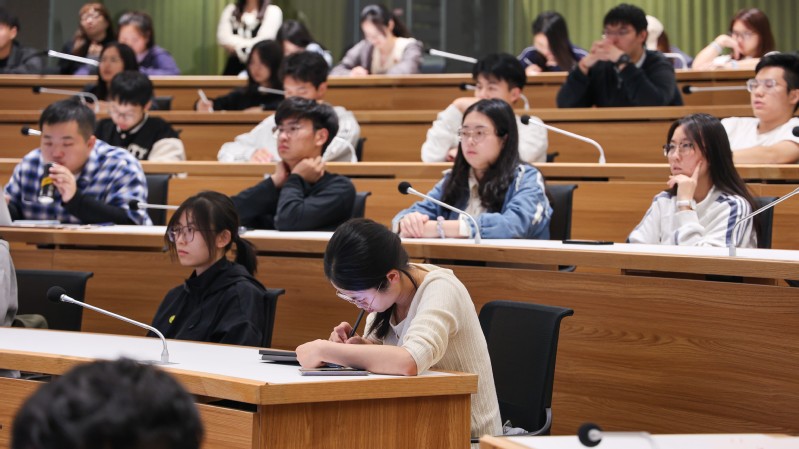 学生在听课第一讲也是本课程的第一次试讲,由第五届上海高校青年教师教学竞赛一等奖得主,我校马克思主义学院教师姜绳博士主讲,题目是《外交概论与我国改革开放以来的外交实践》。他结合我国改革开放以来的外交实践,深入浅出地讲解了基本外交概念。课程讲述理论联系实际,逻辑合理,内容完整,叙事话语体系独特,讲述生动流畅,吸引百余名学生听讲,现场不得不临时增加座椅。