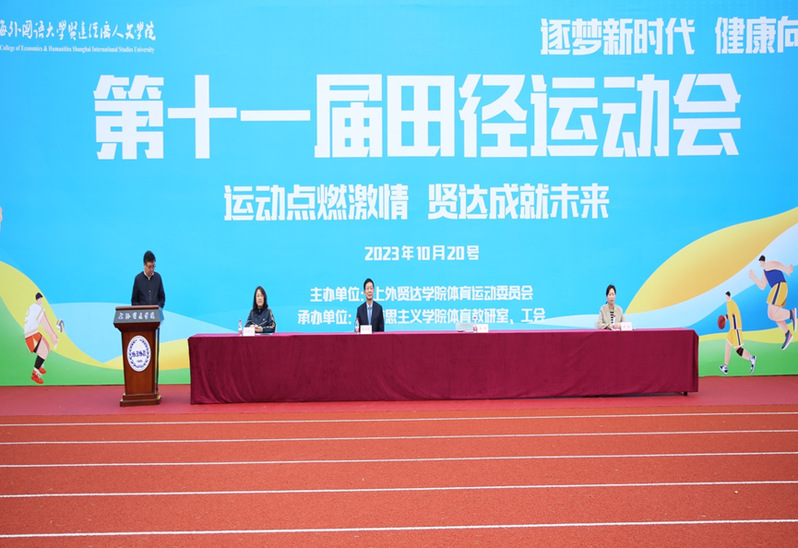 2023年10月20日,以“逐梦新时代·健康向未来”为主题的我校第十一届田径运动会在崇明校区田径场举行。校长、党委副书记郑方贤,党委副书记、纪委书记王科,副校长马艳红,党委副书记、工会主席郑虹等校领导出席开幕式。开幕式由王科副书记主持,郑方贤校长致辞并宣布运动会开幕。开幕式后,郑方贤校长为比赛发令第一枪。