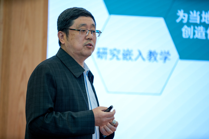 最后由我校商学院院长王晓光教授介绍了数字化背景下商学院的使命和愿景。王晓光院长指出愿景、使命、价值观是办学的指南针,数字化背景下,使命和愿景也相当于为学院发展提出了高标准和高要求。