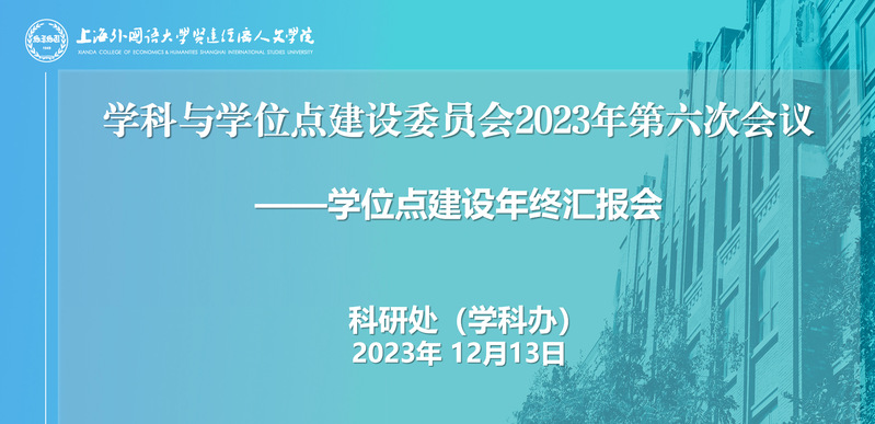 为加强上外贤达学院硕士学位授予单位培育专项持续建设,完善质量监测与评价制度,推进学科与学位点建设委员会第五次会议任务进度。12月13日,学校组织召开本年度学科与学位点建设委员会第六次会议暨学位点建设年终汇报会。