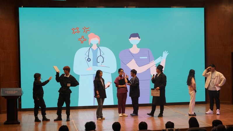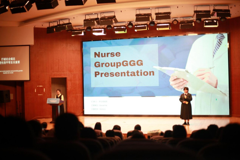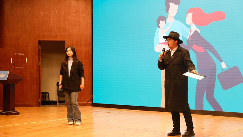 来自不同学院的5名学生扮演着家庭人员、护士、刑警、法医、编剧,他们因为性别问题产生了分歧,但也在平等对话和友好讨论中逐渐化解了矛盾,达成一致。主题演讲环节,五位担任不同角色的代表围绕性别平等分别阐述自己的观点。“流畅的表达、思想的碰撞”,充分展现了贤达学子精湛的英语水平和青年领袖们的魅力风采,他们关注SDG,关注性别平等,并给出青年回答。