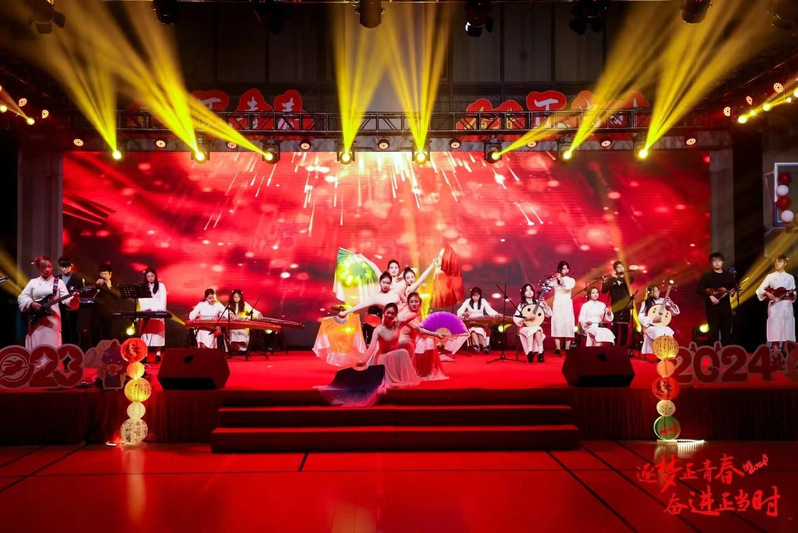 此次新年晚会以“逐梦正青春 奋进正当时”为主题,共分为“梦启韶华 薪火相传”“执光开路 冉冉向新”“逐梦山海 奋楫远航”三个篇章。晚会在学生社团音乐社匹诺曹乐队的《大家一起喜洋洋》中拉开帷幕,现场瞬间欢腾。
