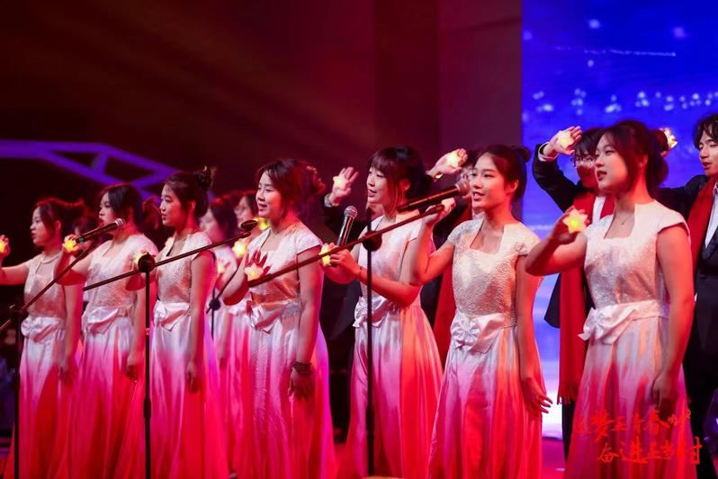 大学生艺术团合唱队用歌声唱响对肆意青春的赞美、唱出对美好生活的追求,青春模样与动人声音碰撞,带来无限可能。