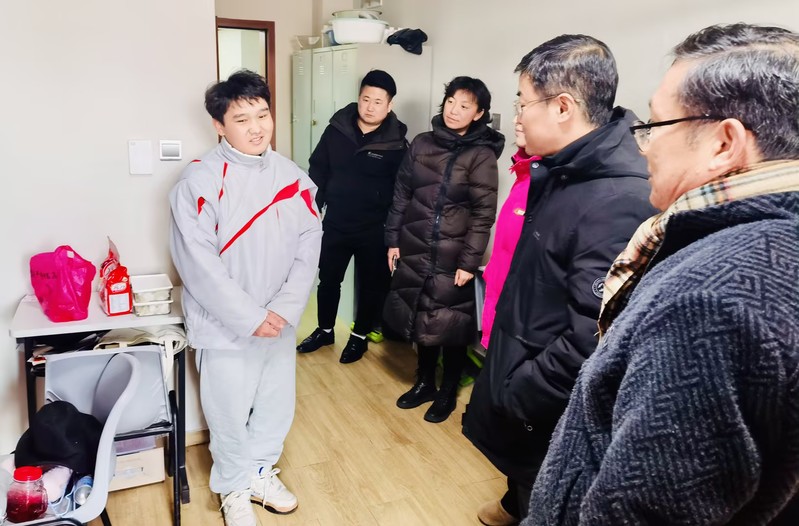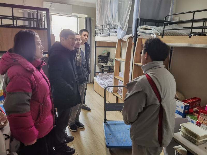 2月8日下午,校党委副书记王科带队深入学生宿舍,慰问春节留校学生。走访过程中,王科副书记与同学亲切交谈,了解同学的留校安排、在校过年的学习情况及生活需求等。随后,向同学送上慰问品和春节祝福,表达学校深切关怀。