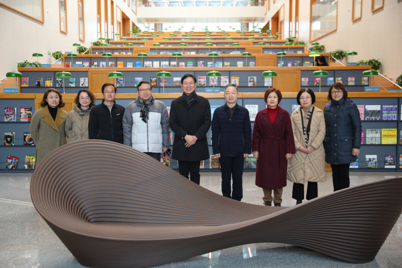 在郑校长的陪同下,姚副主任一行参观了我校精英墙、国交大楼、图书馆及商管大楼,了解了我校独特的建筑理念和环境育人思想。在随后的座谈中,姚副主任一行与我校领导就崇明区有关人才政策进行了深入的交流。