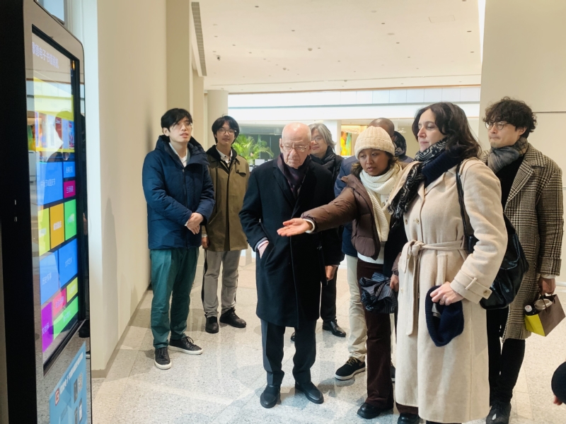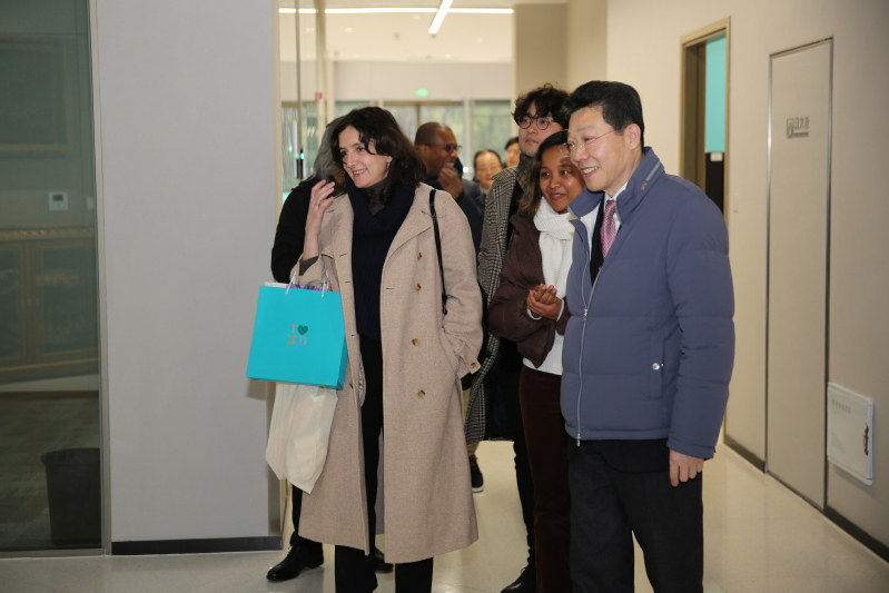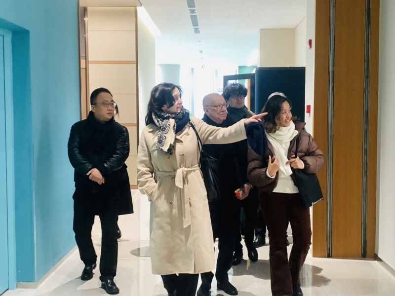会谈开始前,教育学院赵炳辉院长、文曙光副院长等一行陪同法国巴黎高等师范音乐学院来访贵宾参观了我校崇明校区,包括行政楼、综合楼精英校友墙、智慧教学中心、图文信息中心等,来访贵宾们被我校优美的校园环境、智能化的硬件设施、高度的信息化水平、浓郁的国际化氛围深深吸引。