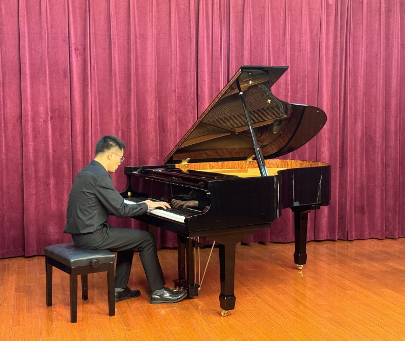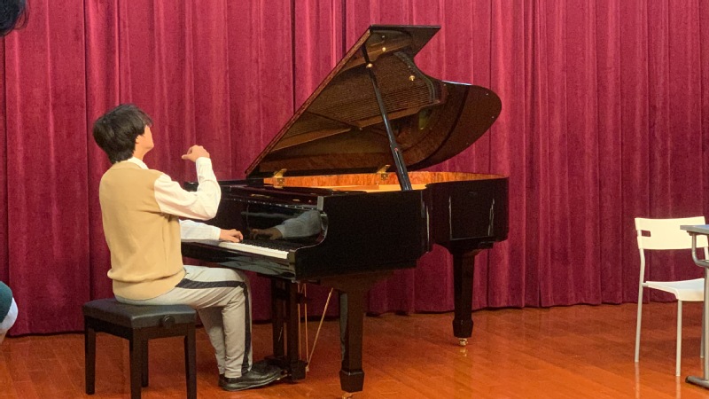 下午16:00,我校艺术教育系在虹口校区教学楼小音乐厅举办音乐交流活动,两校青年钢琴教师代表登台演奏,分别带来肖邦降A大调“英雄”波兰舞曲、肖邦第三钢琴叙事曲、肖邦第四钢琴叙事曲、肖邦圆舞曲Op64.No2、德彪西《水中倒影》等作品,现场气氛热烈,掌声经久不衰。同时,为展现中国民族音乐的独特韵味,艺术教育系的学生代表还在参观交流期间现场展示了多首别具风格的古筝音乐作品,得到法方到访贵宾的高度好评。