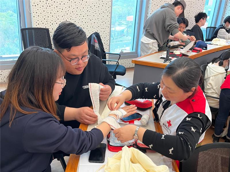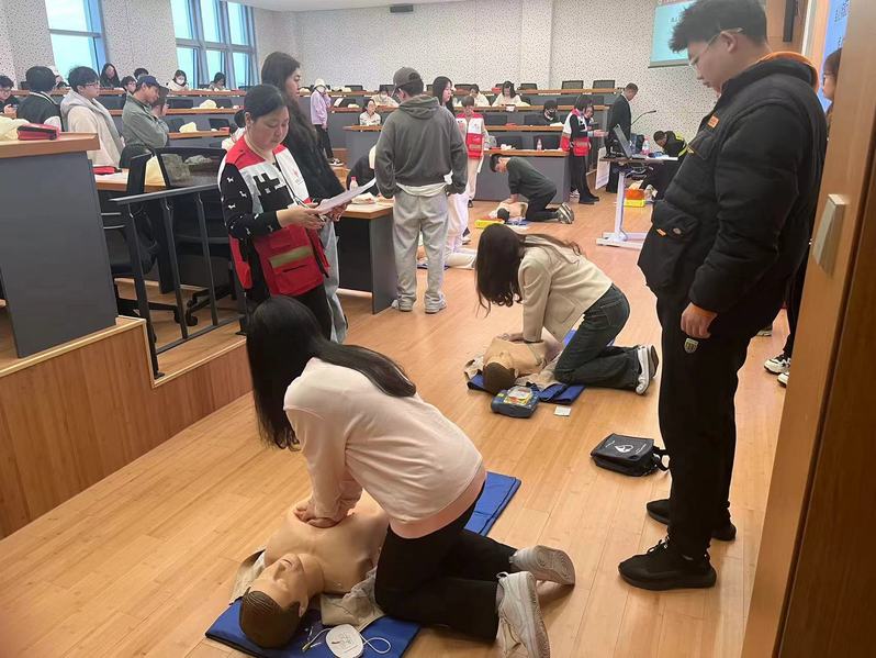 今年伊始,上海市政府已将“培训8万名持证应急救护员”列入2024年为民办实事项目,由市红十字会牵头,市民政局、市卫健委、市教委、市应急管理局、市妇联等单位配合共同推进。作为一所立足崇明、坚持以学生发展为核心的多科性大学,上外贤达学院师生对急救培训表现出了极高的参与热情,他们渴望加入应急救护的行列。培训现场,同学们热情高涨,踊跃参与互动,在培训老师的指导下学习心肺复苏、自动体外除颤器的使用、气道异物梗阻处理及创伤救护知识,展现贤达学子积极担当的精神风貌。参训教职工也纷纷带头上前实操,以实际行动展现立德树人理念。首批118名参训师生全部通过考核,顺利获得红十字救护员证(初级),标志着我校红十字急救培训工作的圆满开启。