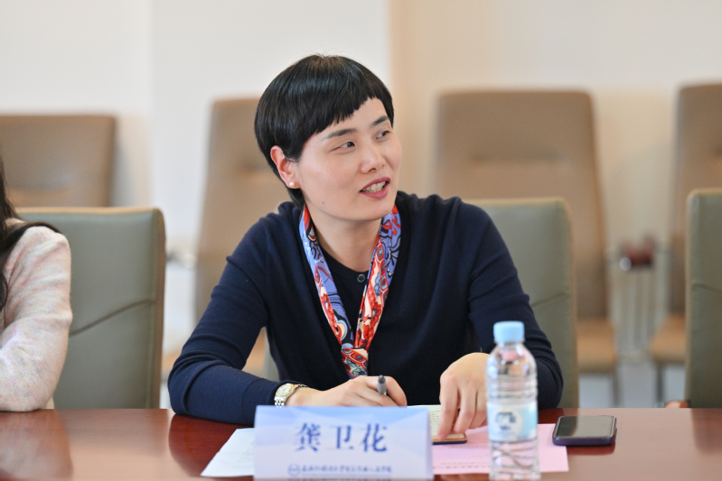 校长助理、学生服务管理中心主任陈应向崇明区疾控精卫分中心来访领导致欢迎辞,并感谢崇明区疾控精卫分中心在疫情期间对学校师生的关爱和支持。之后,她重点介绍了我校即将建成的大学生心理健康教育实训中心,期待与崇明区疾控精卫分中心开展进一步的交流合作。