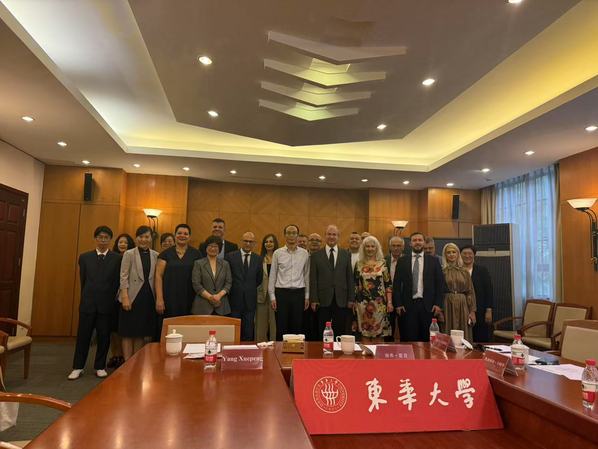 近日,由外语教学与研究出版社带队,阿尔巴尼亚地拉那大学孔子学院代表团一行14人访问上海。我校外语学院英语专业22-3班潘佳城同学荣幸担任此次接待活动的志愿者,全程参与并协助完成多项交流任务,展现了外语学院学子良好的专业素养与跨文化沟通能力。