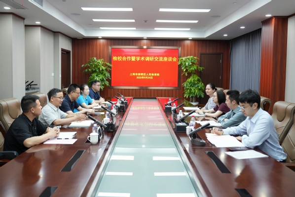9月24日,上海外国语大学贤达经济人文学院副校长季萍率领商学院副院长张源及法学系主任张峥、法学系教师胡晓一行,赴崇明区人民检察院开展检校合作暨学术调研研讨会。崇明区人民检察院党组成员、副检察长谢惠,党组成员、政治部主任朱芸及公益检察室和政治部相关负责人出席会议。检校双方围绕法治人才培养、理论实践融合、服务区域发展等核心议题深入交流,达成多项合作共识。