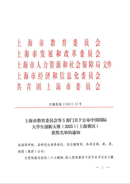 近日,2025年中国国际大学生创新大赛(上海赛区)结果公布。我校斩获上海赛区“高教”主赛道金奖1项、铜奖1项,“红旅”赛道荣获金奖1项。且我校荣获该项赛事上海赛区“优秀组织奖”。