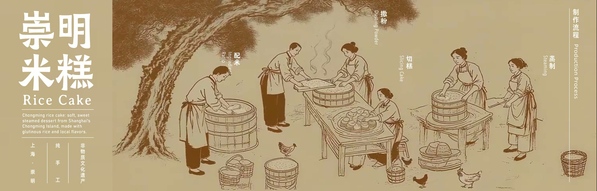 在产教融合层面,项目将非遗品牌创新纳入教学实践,为崇明糕、米酒等传统产品重塑文化IP,设计融合AR互动、环保材质与地域美学的包装体系。2025年新包装上市后,崇明糕销量实现翻番,有效激活了非遗产品的市场生命力。