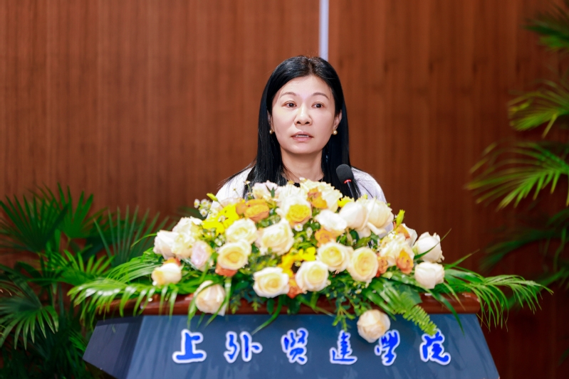 中国出版集团东方出版中心副总编辑、上海中版图书有限公司董事长、上海书刊发行协会监事长刘佩英女士系统介绍了东方出版中心在“世界历史文库”“区域国别极简史”等国家出版项目中的建设成果,强调出版机构在推动区域国别研究知识体系建设、促进学术成果传播、服务国家战略方面发挥着重要作用,并期待与上外贤达学院进一步深化合作。