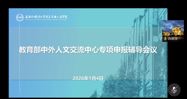 1月4日晚,对外经贸大学英语学院院长向明友教授应我校邀请,为我校申报教育部中外人文交流中心专项课题的教师进行了线上辅导。温建平校长出席会议,课题申报人、各学院科研骨干教师及科研处工作人员参会,会议由梁副校长主持。